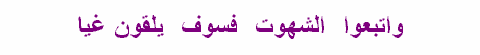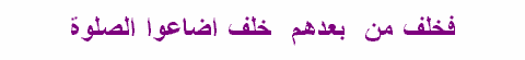 Kami meninggalkan di belakang mereka ,gologan yang meninggalkan senbahyang dan memperturuti keinginan nafsu , sebab itu mereka akan menemui kebinasaan