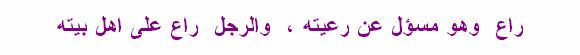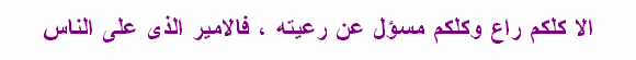 Ketahuilah ! .setiap kamu adalah pengembala .Dan setiap kamu akan ditanya tentang gembalamu.Seorang Amir yang berkuasa terhadap rakyat, akan ditanya tentang kepimpinannya.Seorang lelaki adalah pemimpin atas keluarganya,dia akan ditanya tentang pimpinannya . Seorang wanita adalah pemimpin di rumahtangga suaminya dan anak-anaknya,dia akan ditanya tentang pimpinannya.Ketahuilah bahawa setiap kamu adalah pemimpin .Dan setiap kamu akan ditanya tentang pimpinannya.